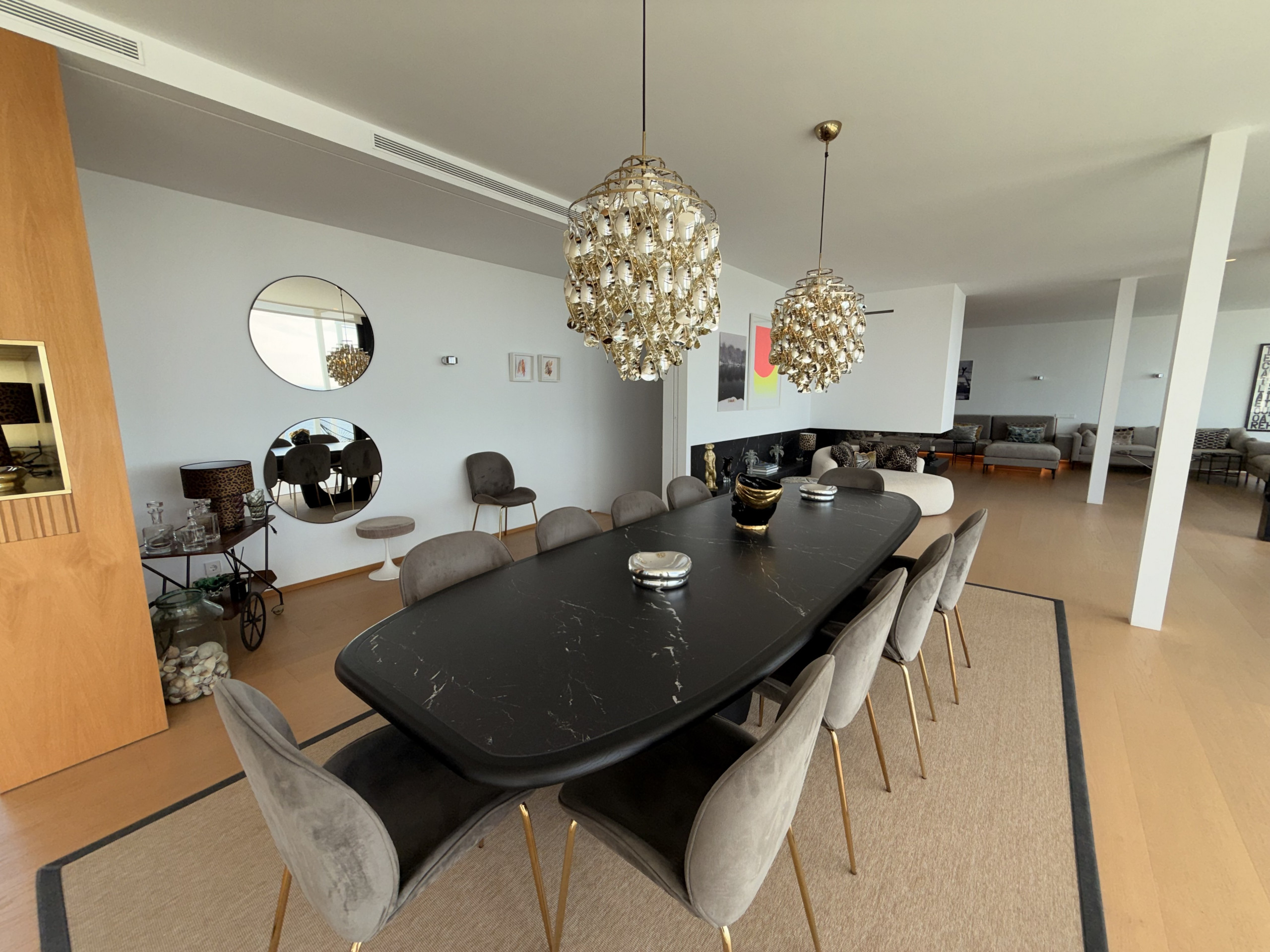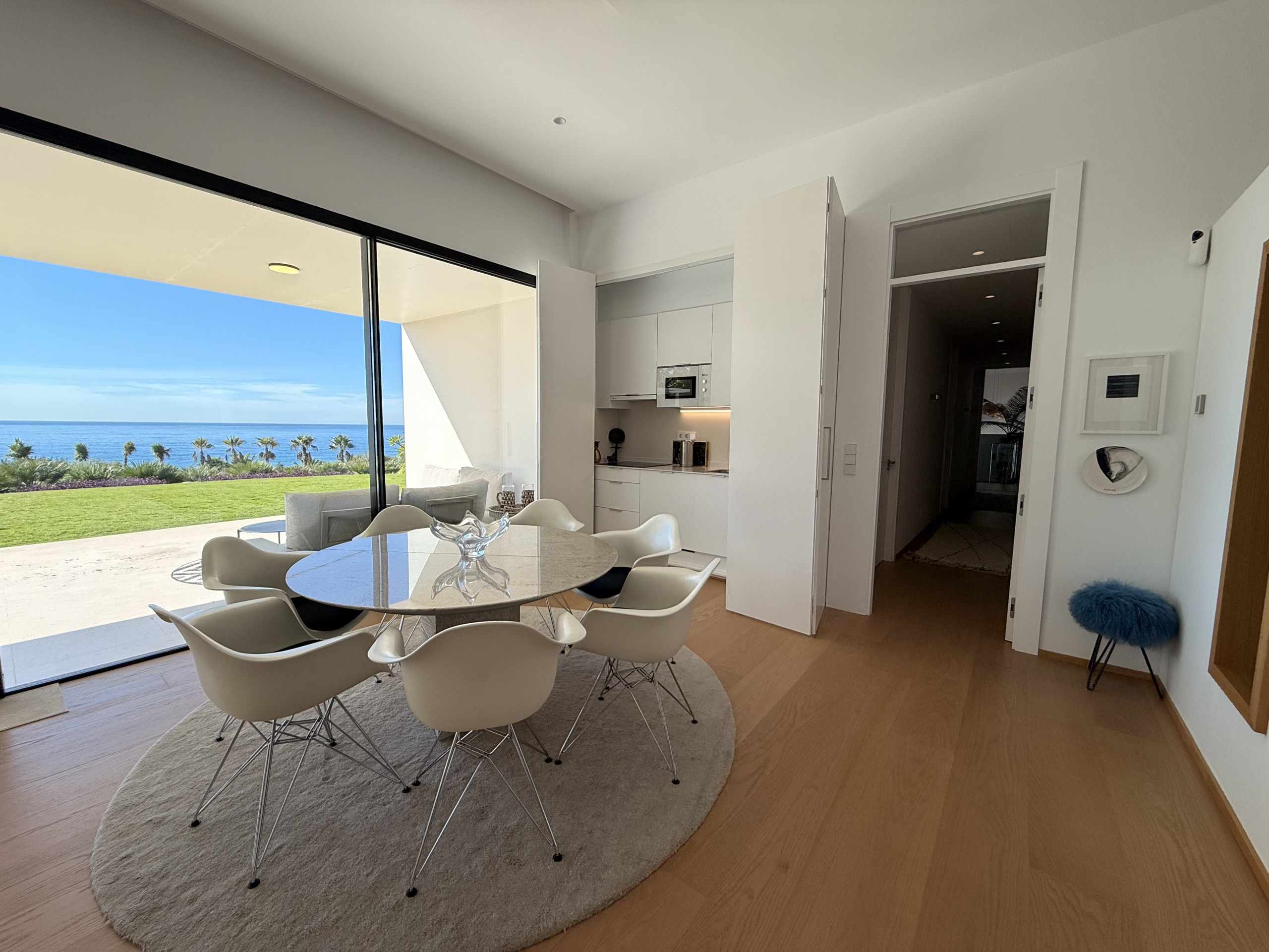 Schon beim Betreten werden Sie von der Helligkeit und dem ununterbrochenen Meerblick verzaubert. Die Hauptebene ist ein offener, eleganter Raum – ideal zum Entspannen und Unterhalten.