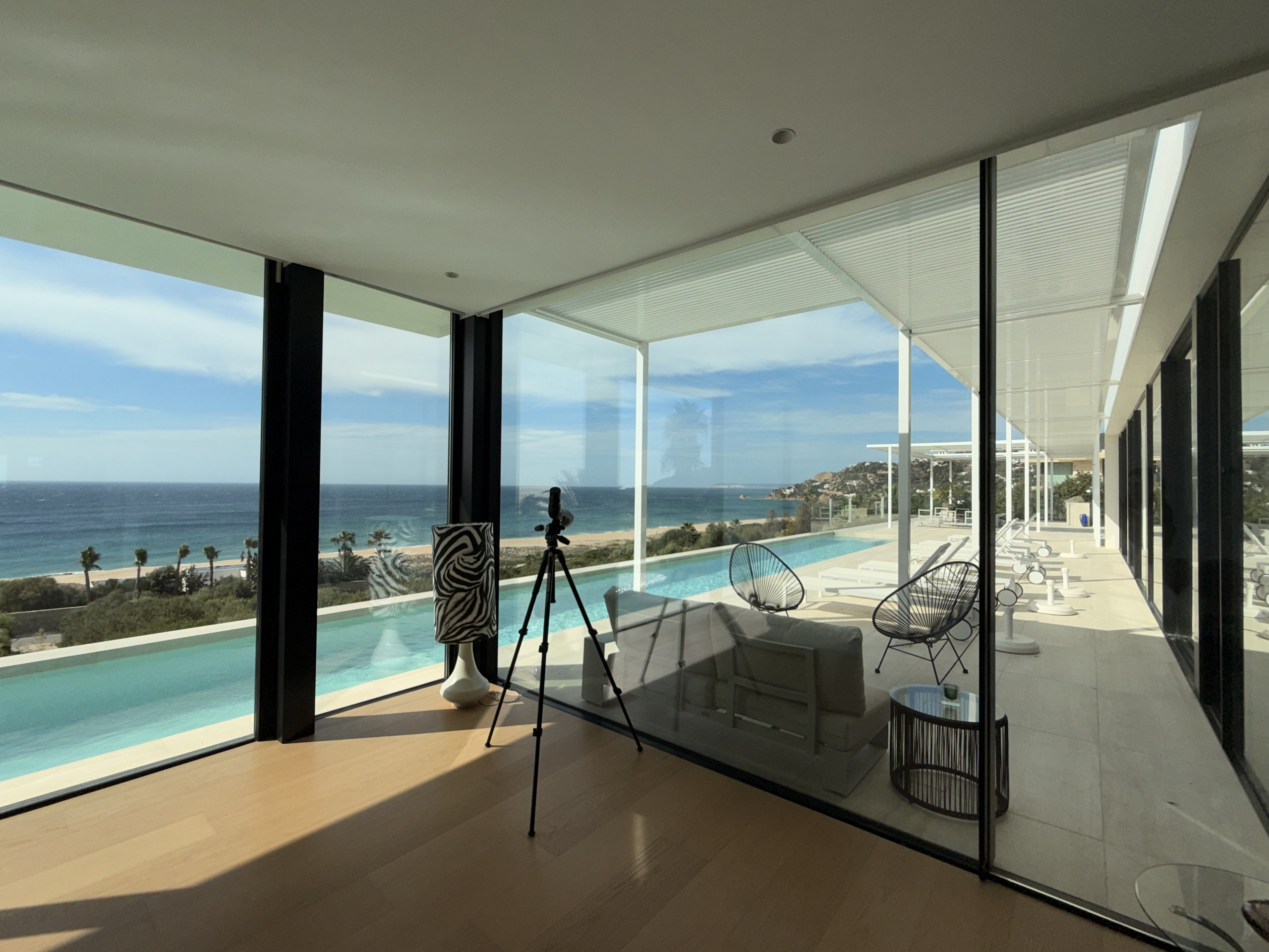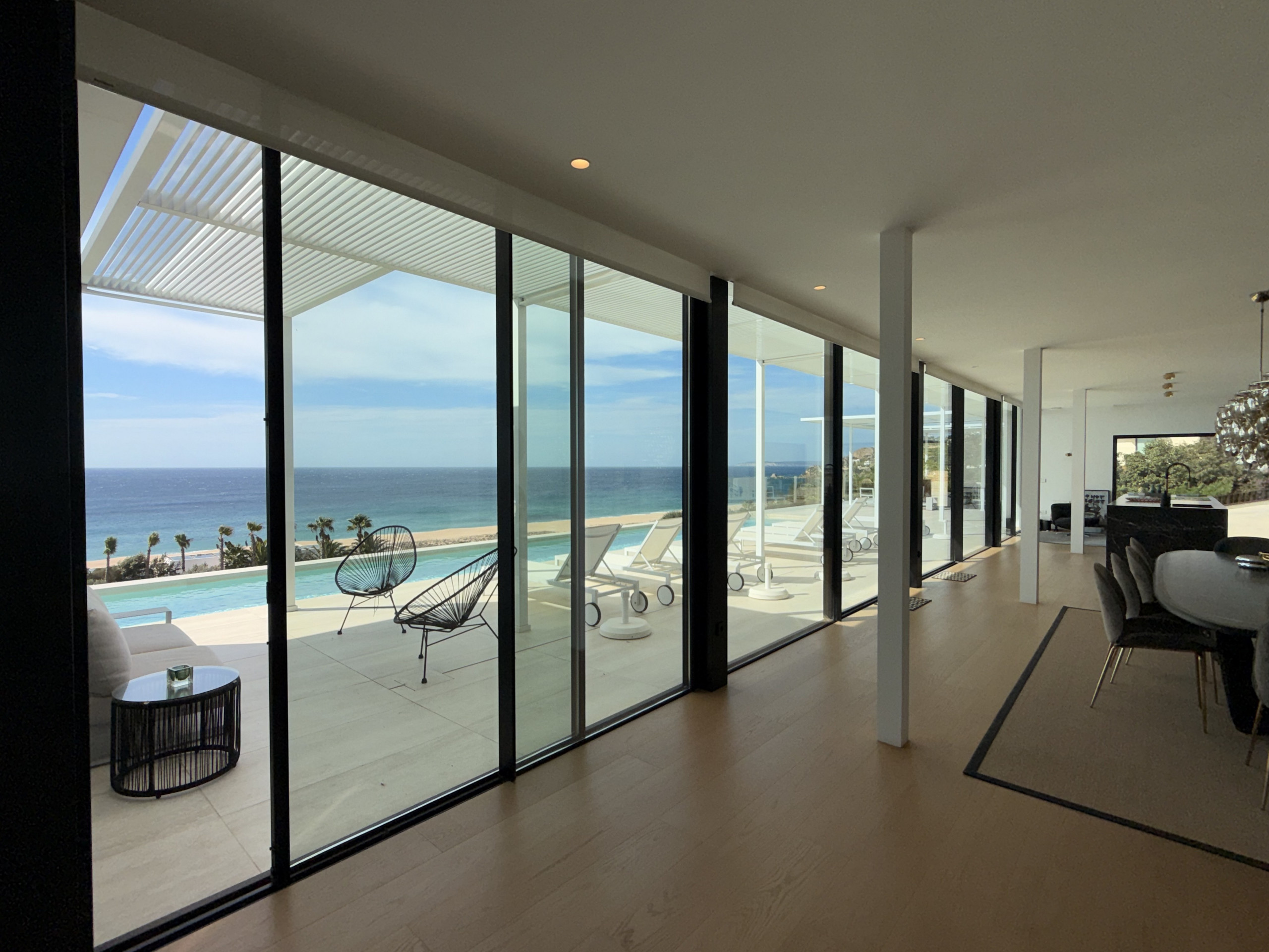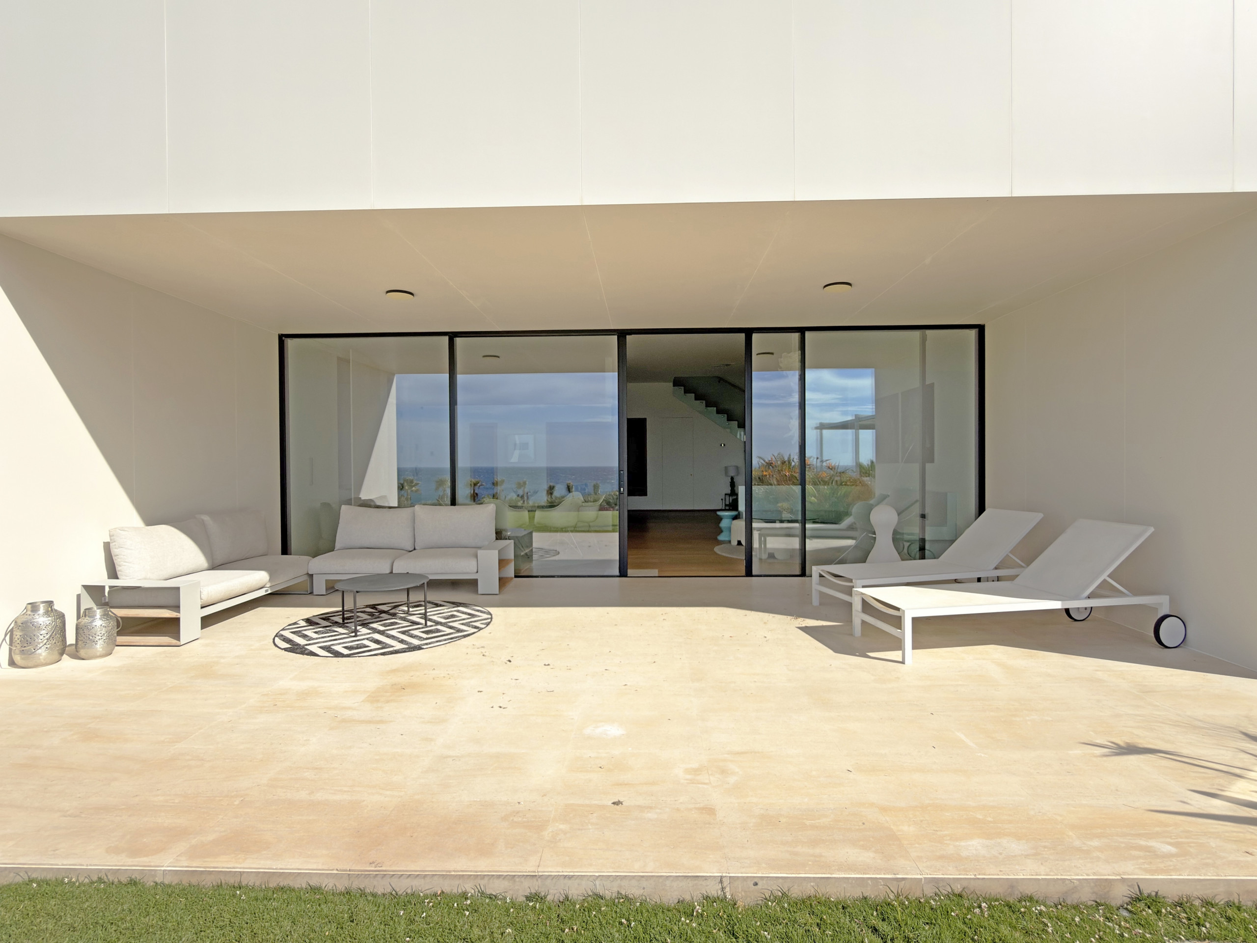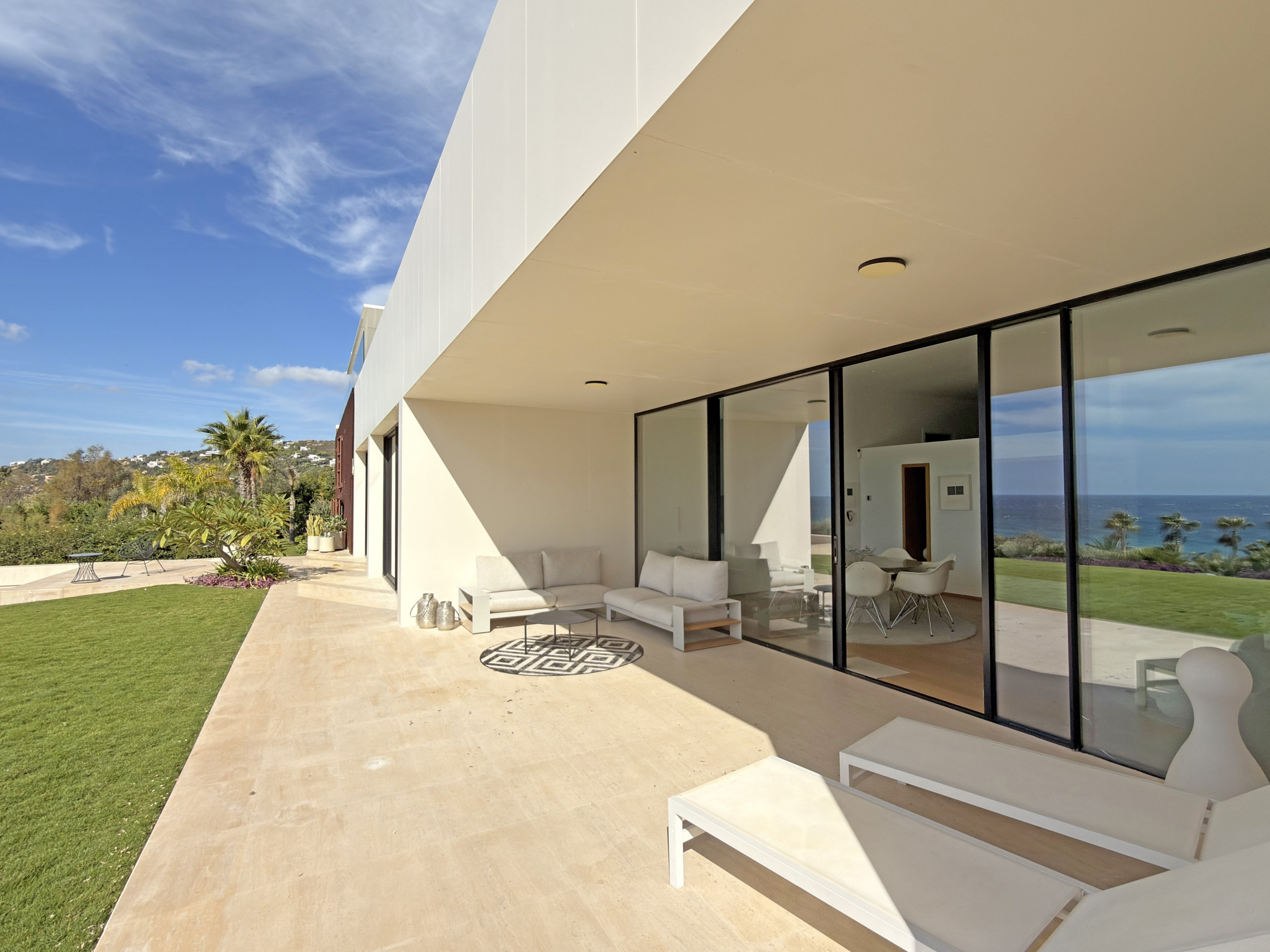 Ess- und Wohnbereich: Ein großzügiger Raum zum Verweilen – Esszimmer und Wohnzimmer mit Bibliothek sind vollständig zum Meer hin ausgerichtet und schaffen eine Atmosphäre der Ruhe und des Luxus. Mit dem bereitstehenden Teleskop können Sie – mit etwas Glück – Wale, Delfine und zahlreiche Vogelarten beobachten, die in der Meerenge von Gibraltar und ihrem Naturpark leben.