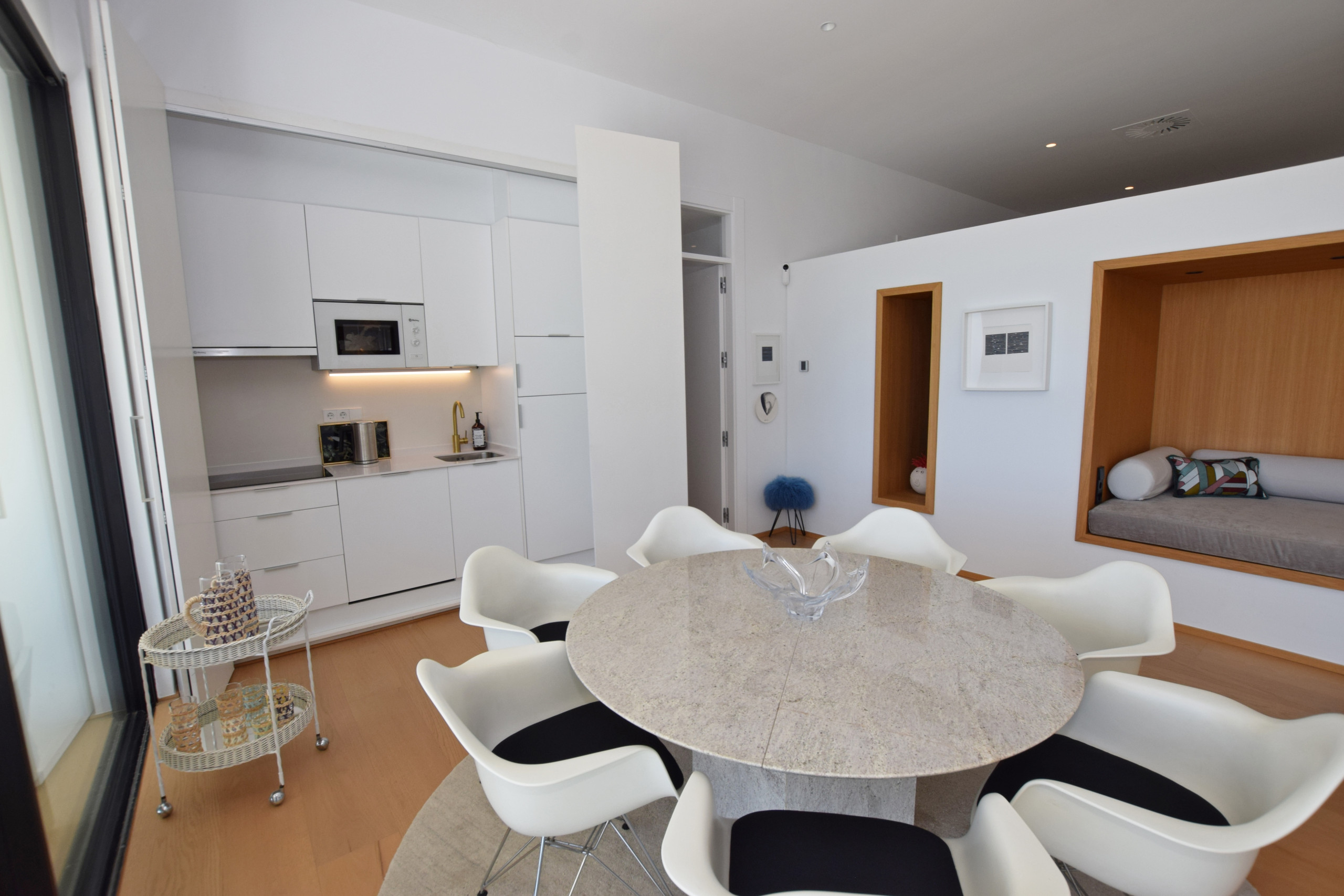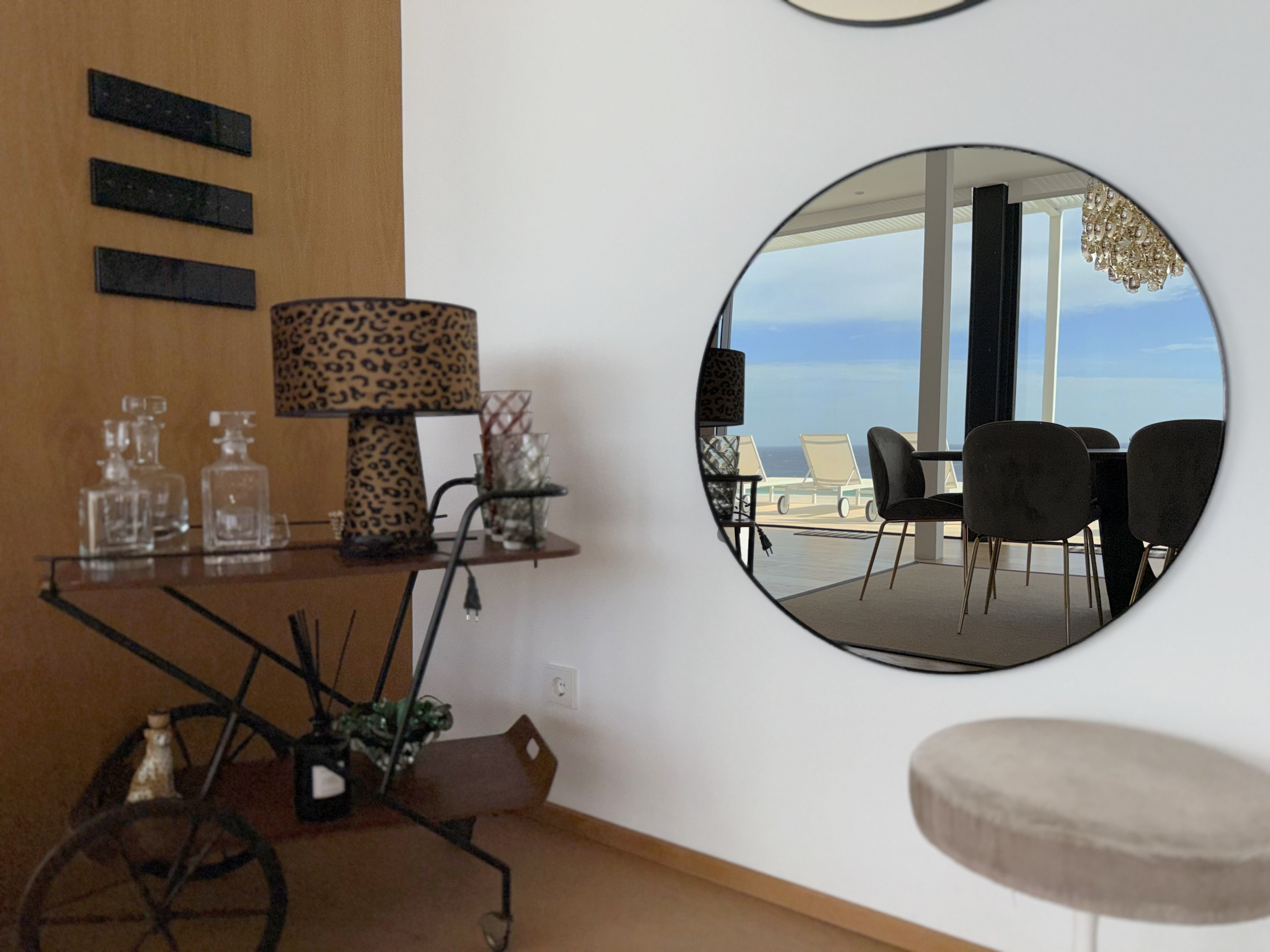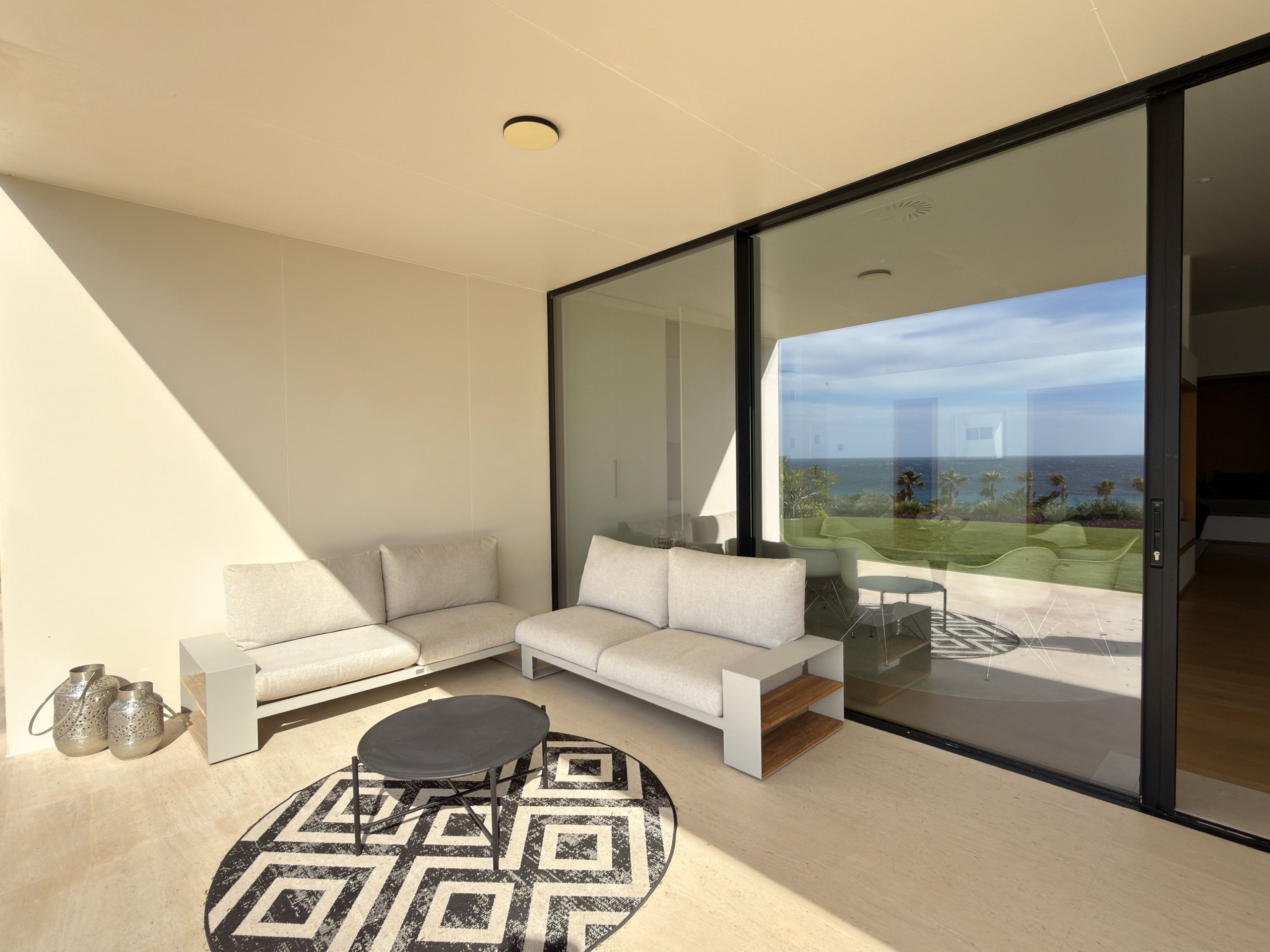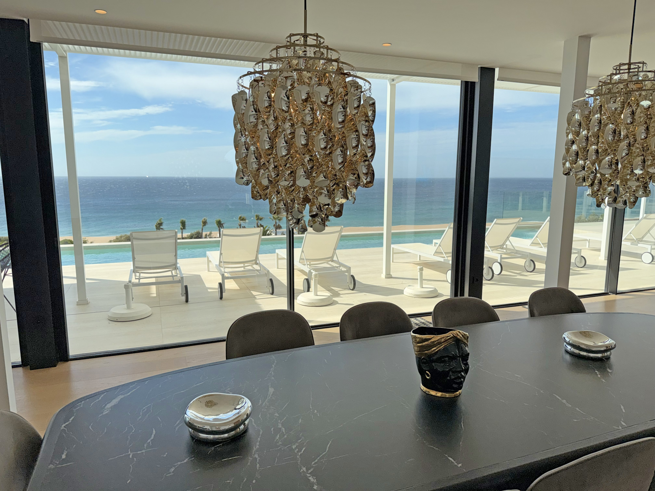 Ess- und Wohnbereich: Ein großzügiger Raum zum Verweilen – Esszimmer und Wohnzimmer mit Bibliothek sind vollständig zum Meer hin ausgerichtet und schaffen eine Atmosphäre der Ruhe und des Luxus. Mit dem bereitstehenden Teleskop können Sie – mit etwas Glück – Wale, Delfine und zahlreiche Vogelarten beobachten, die in der Meerenge von Gibraltar und ihrem Naturpark leben.