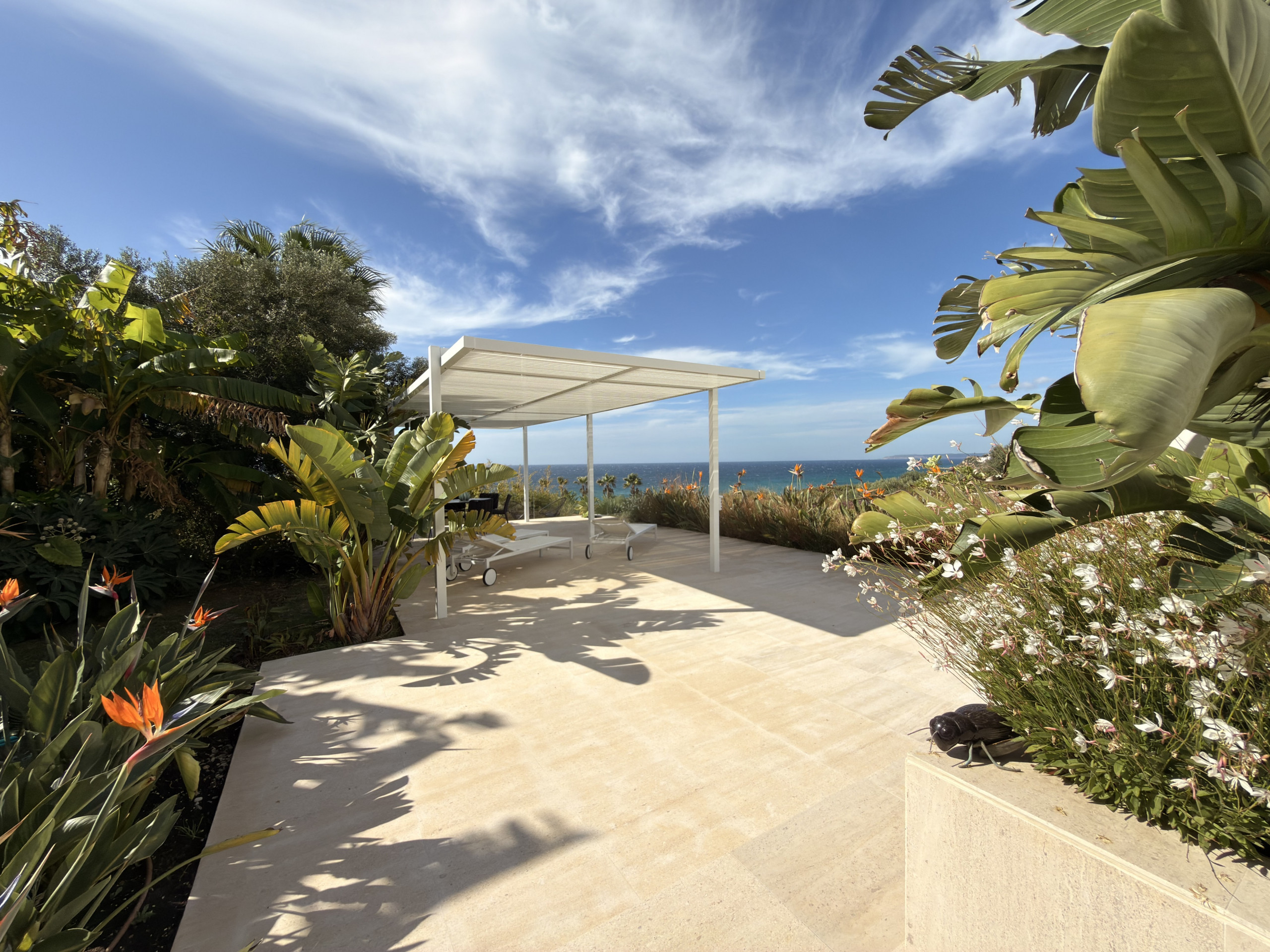 Der traumhafte Garten umgibt die Villa auf dieser Ebene – sorgfältig gepflegt, mit Pavillon, Außenduschen und direktem Zugang zu einem Pfad, der zum Strand führt.