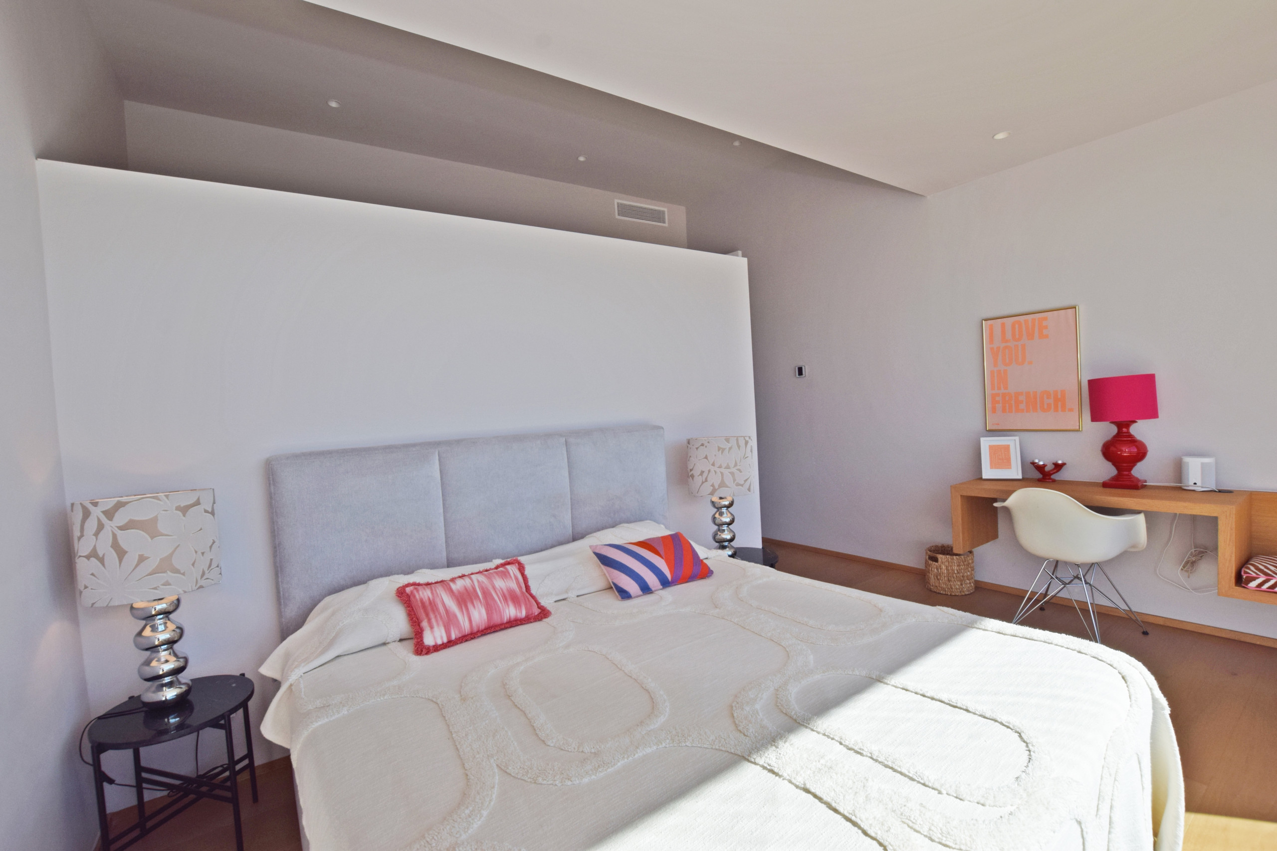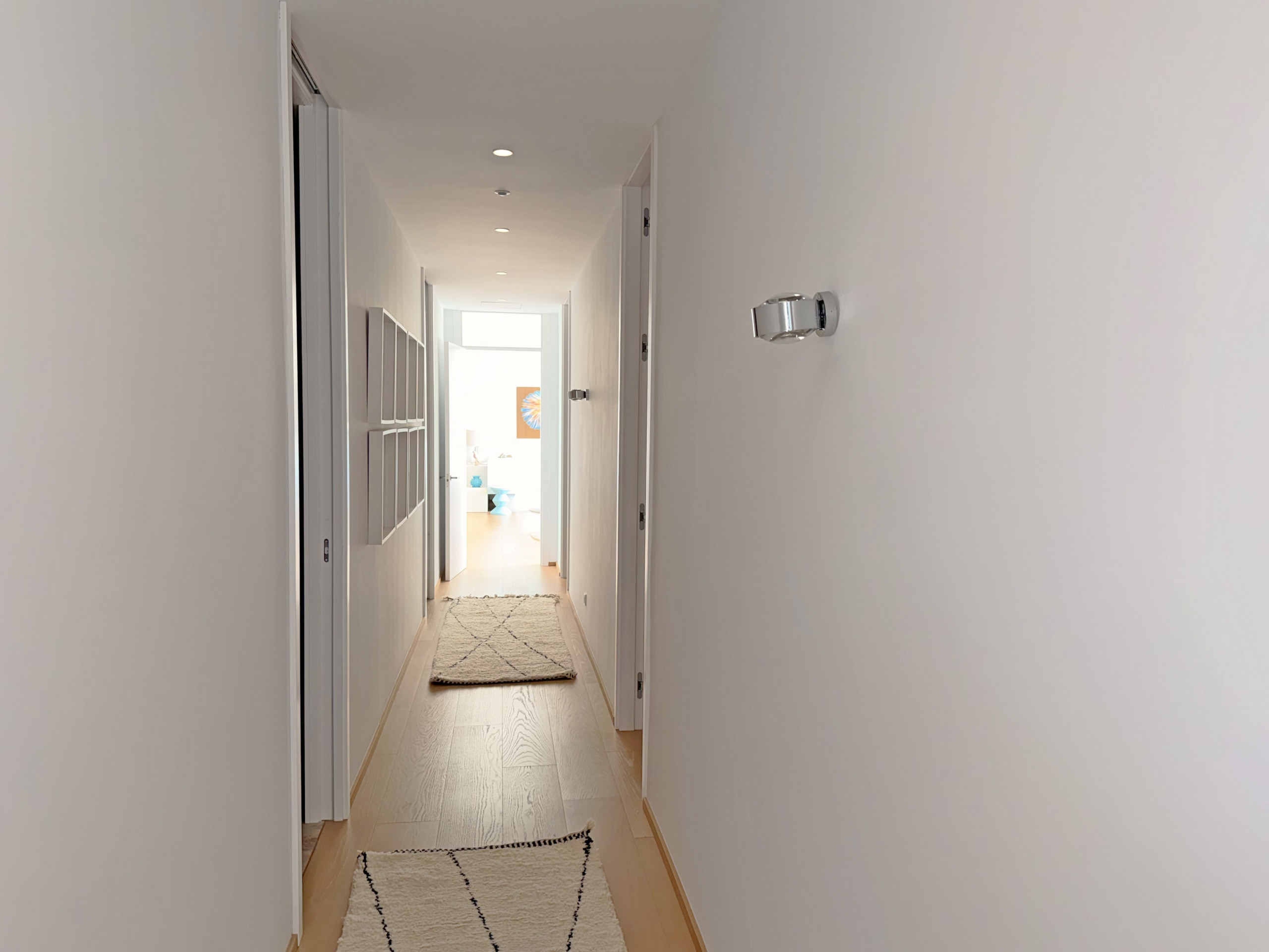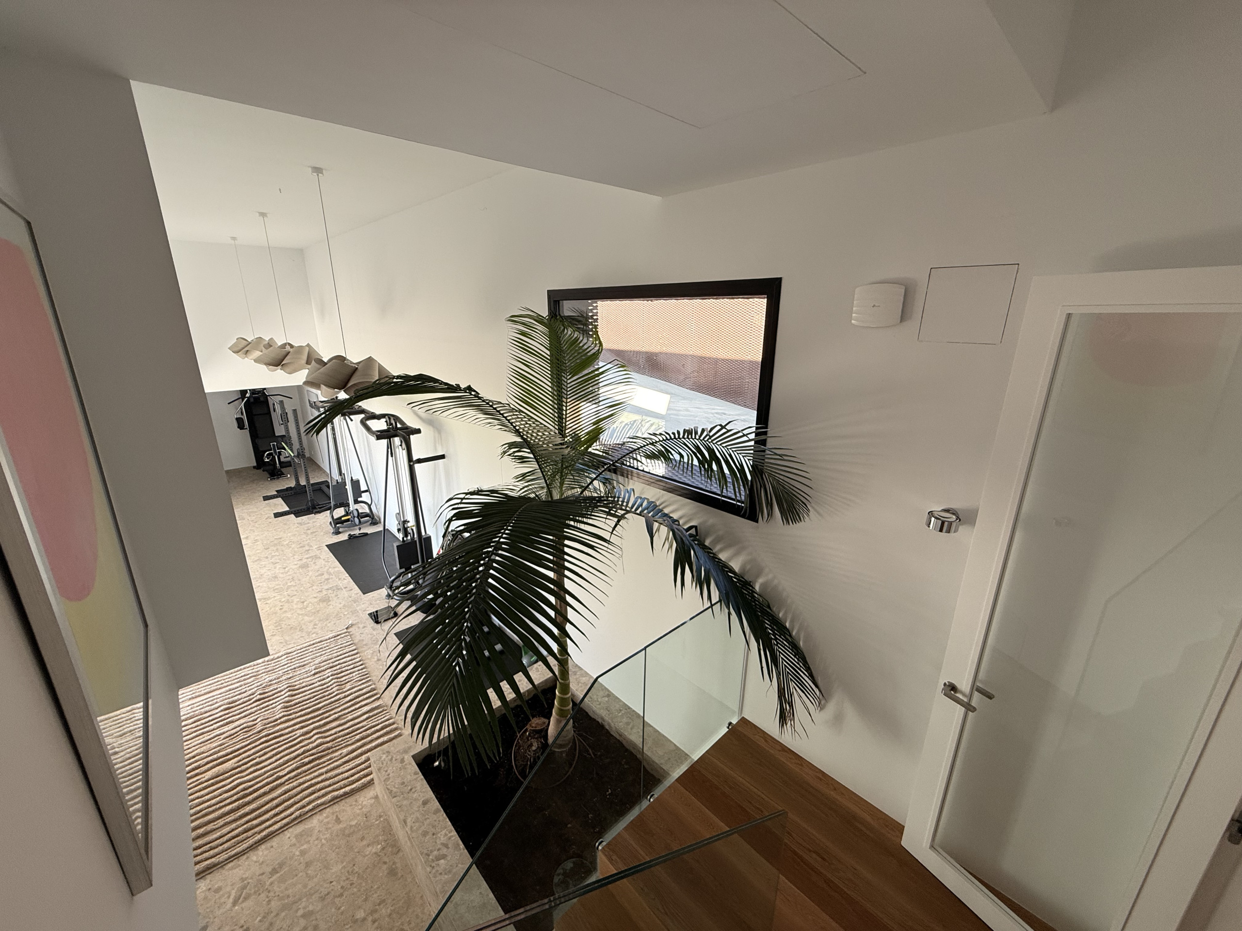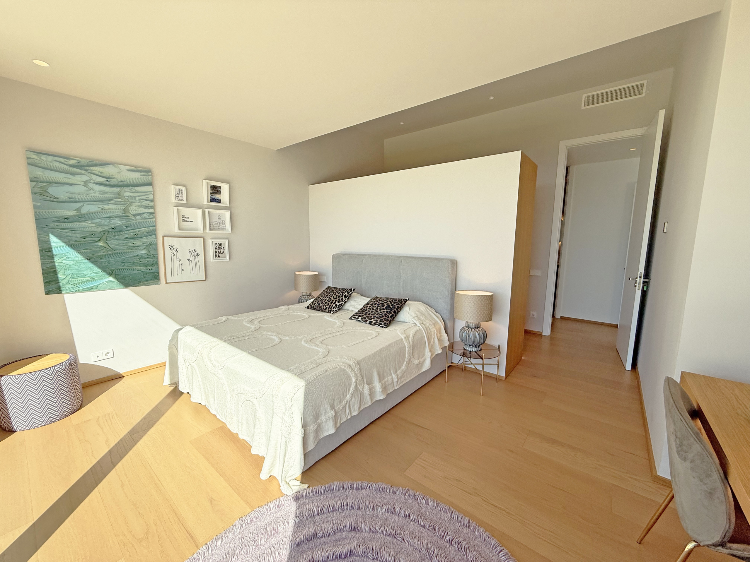 Auf der rechten Seite, hinter Essbereich und Küche, führt ein Flur zu zwei weiteren Schlafzimmern, gegenüber von zwei Bädern mit Dusche. Der Flur endet in einem Wellnessbereich: einem voll ausgestatteten Fitnessraum mit hochwertigen Geräten und Zubehör. Dieser Bereich verfügt außerdem über ein luxuriöses Bad mit zwei Duschen und einer großen Sauna mit Meerblick.