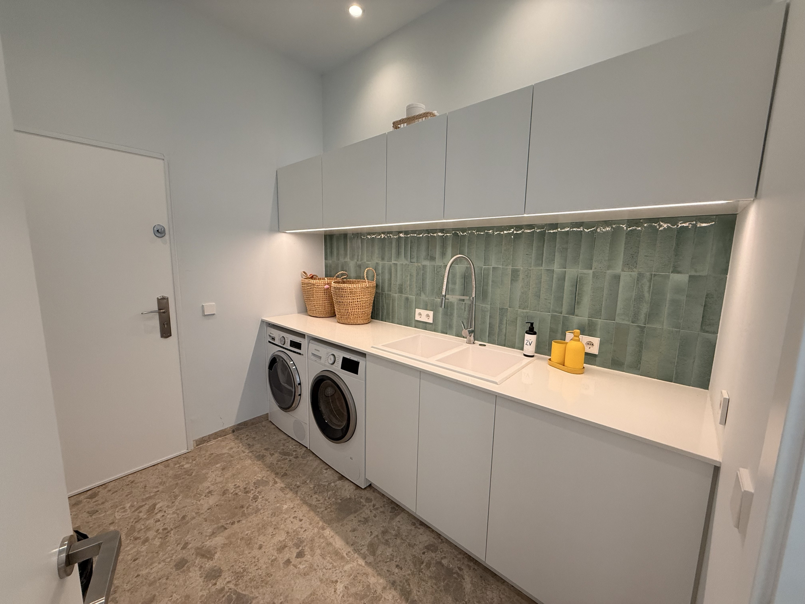 Gourmetküche: Mit modernem Design – genießen Sie die Zubereitung Ihrer Mahlzeiten mit Panoramablick auf das Meer und den Poolbereich. Eine praktische Speisekammer sorgt für zusätzlichen Komfort.