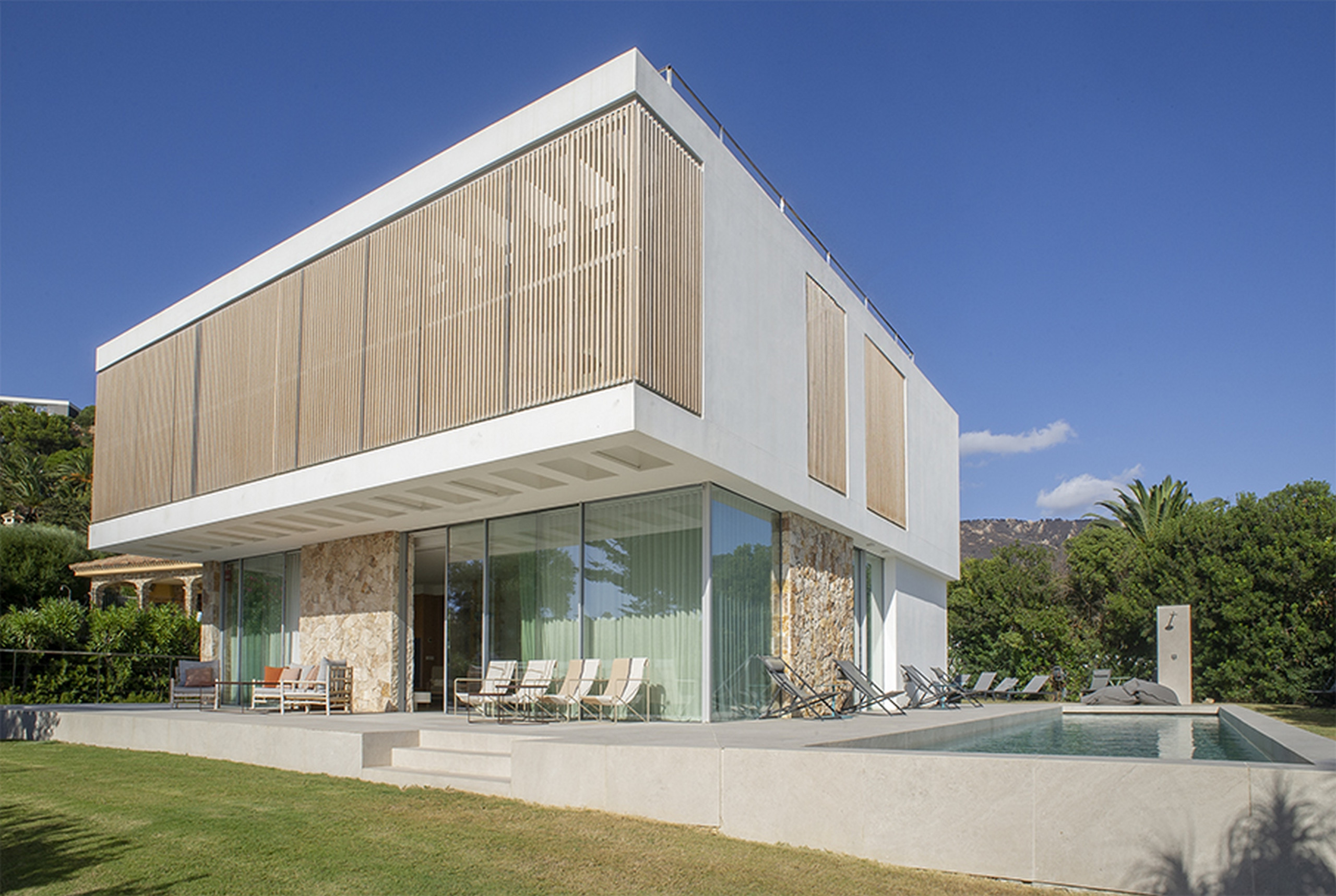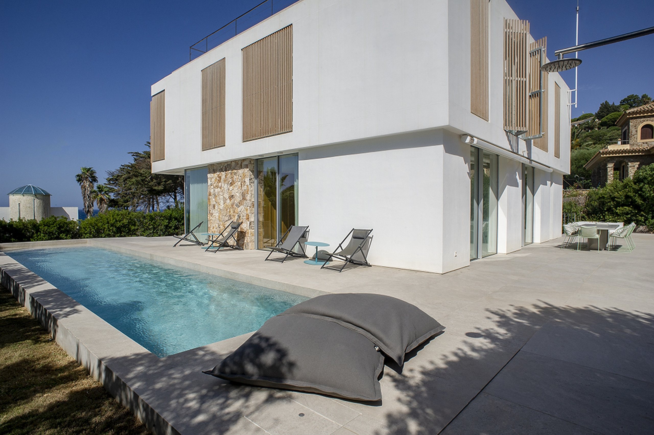 Konzipiert, um 10 bis 12 Personen aufzunehmen, kombiniert dieses architektonische Juwel moderne Linien, natürliches Licht und eine Umgebung absoluter Ruhe. Der überlaufende Salzwasserpool verschmilzt mit dem Horizont, während ein weitläufiger Garten das Haus umschließt und eine private Oase schafft, in der die Zeit stillzustehen scheint.