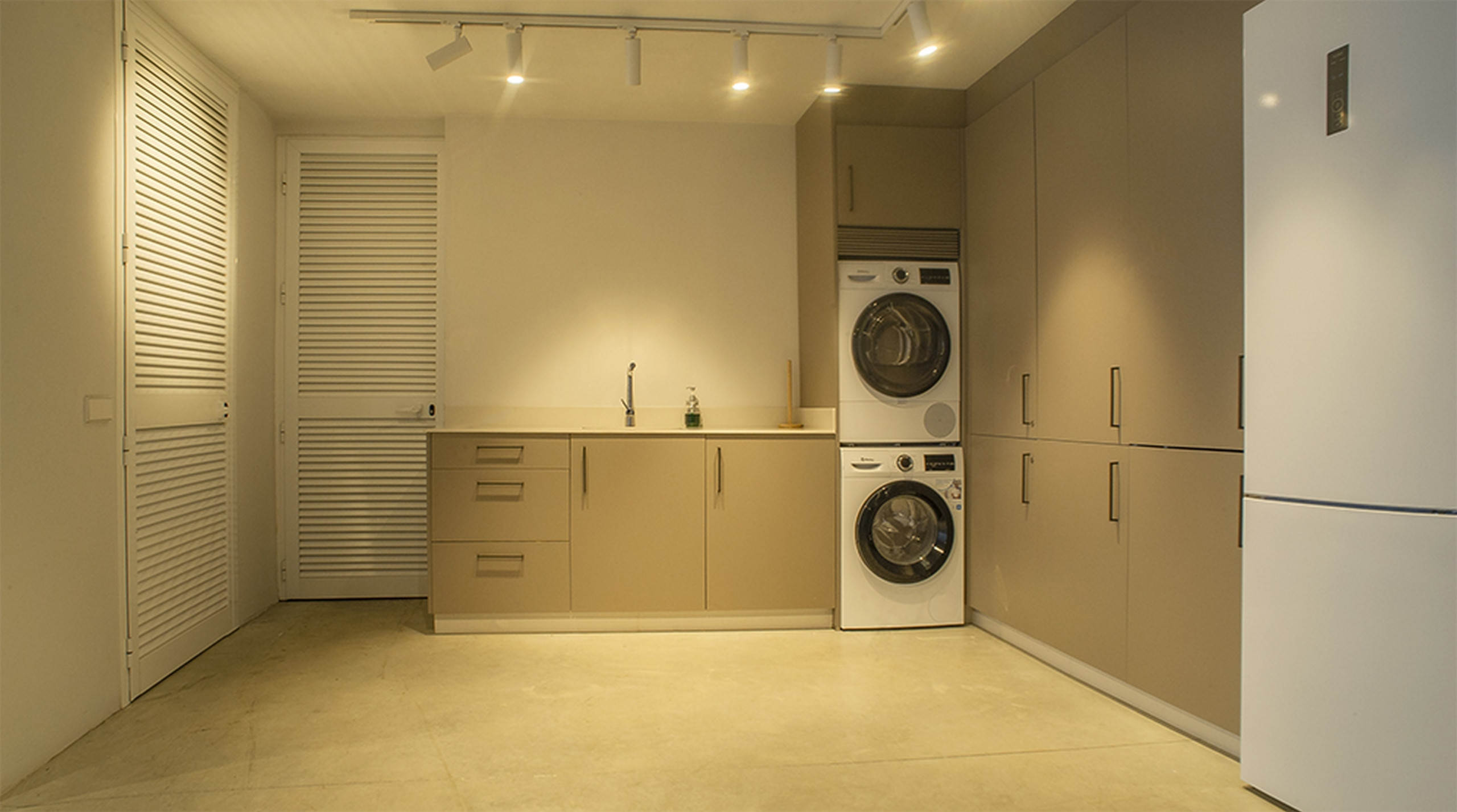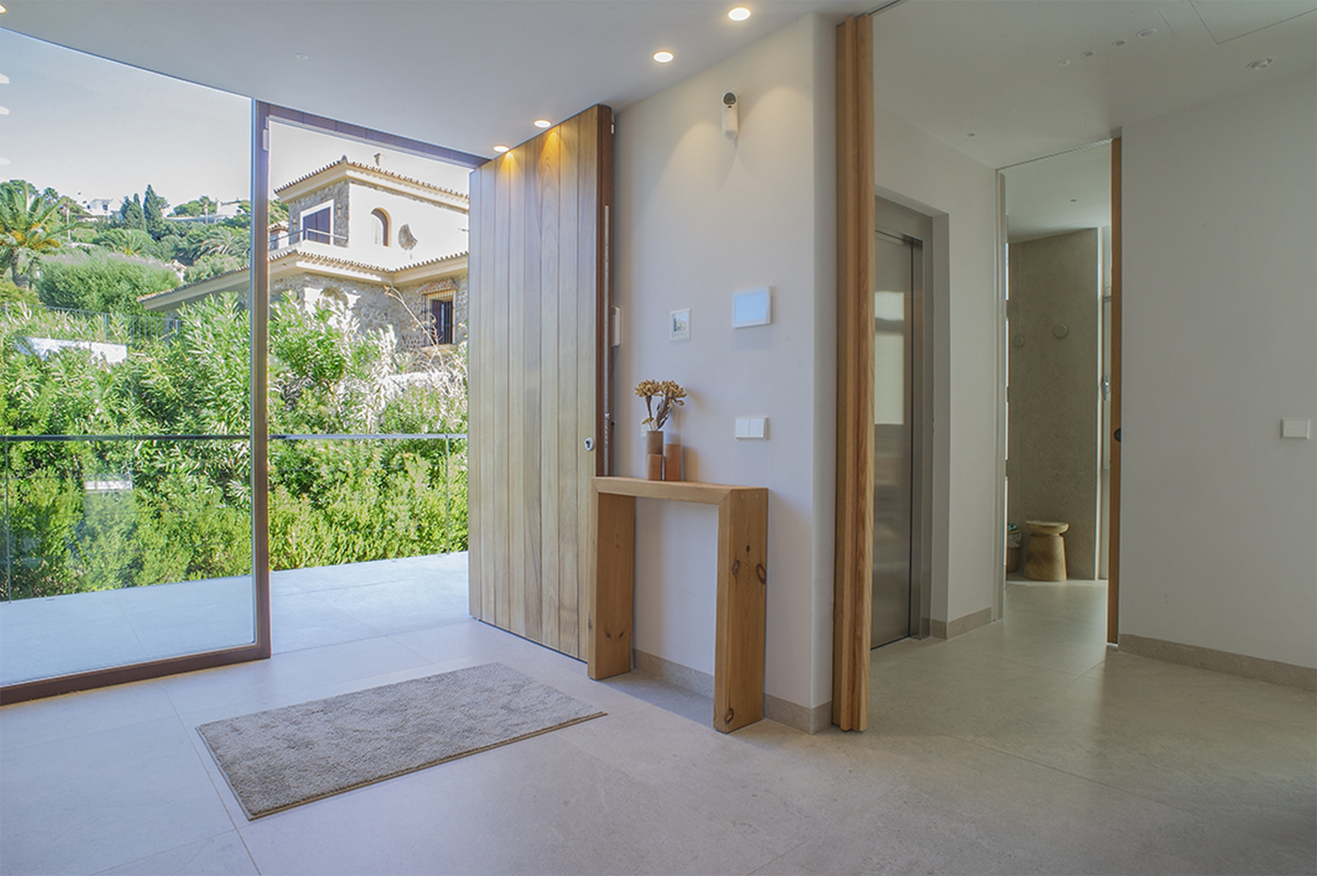 Im Untergeschoss bieten eine Garage für vier Autos, Waschmaschinenraum und ein zusätzliches Schlafzimmer mit Schlafsofa, Badezimmer und Zugang zum Lichthof Funktionalität und Privatsphäre. Ein Aufzug verbindet jede Etage und garantiert absoluten Komfort.