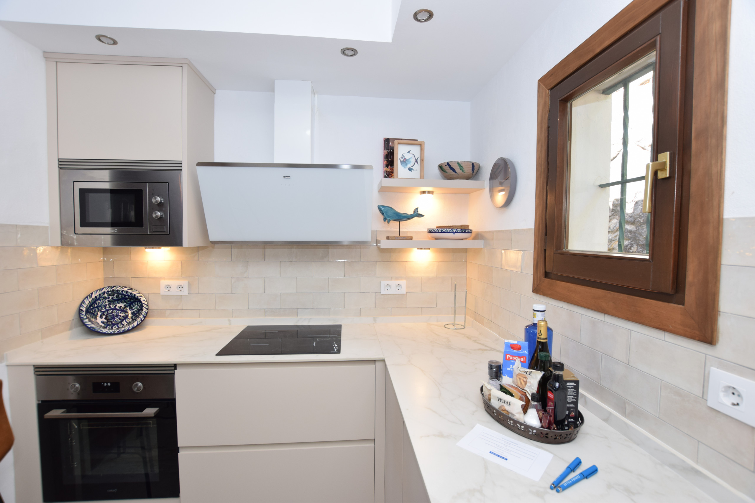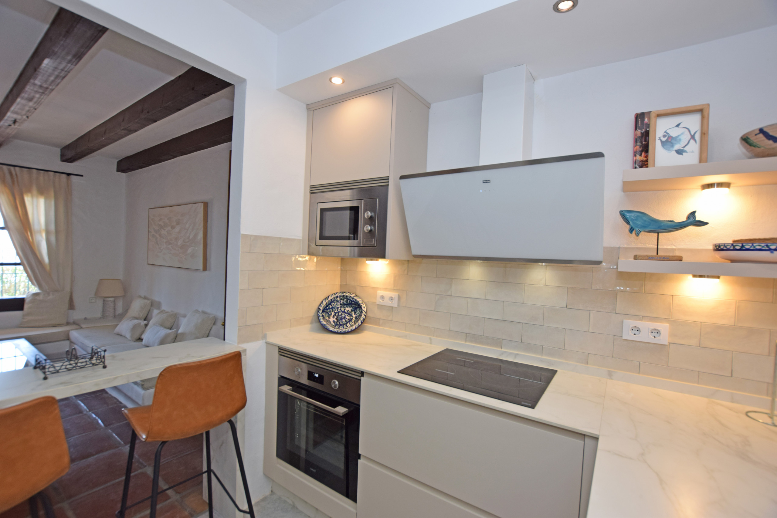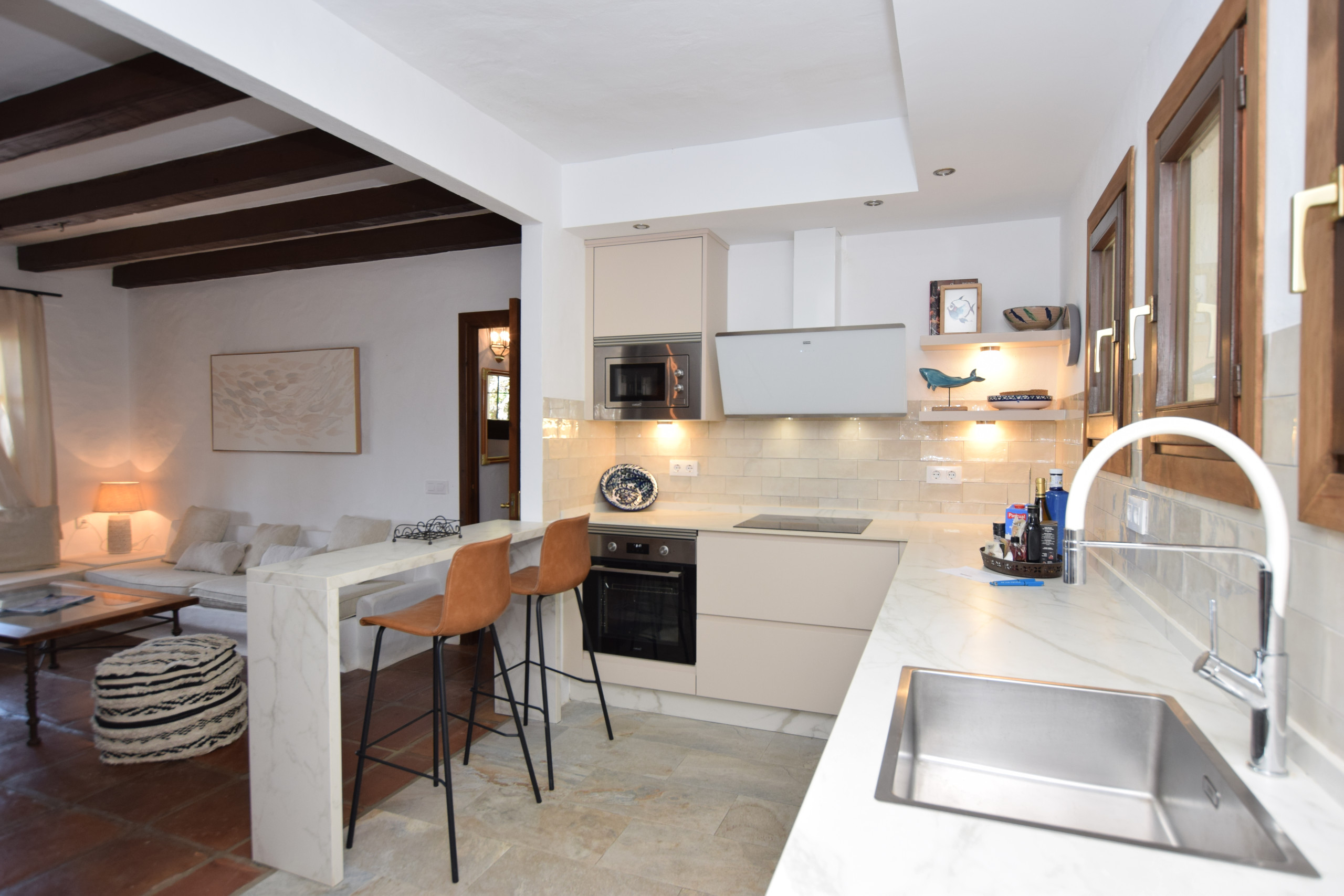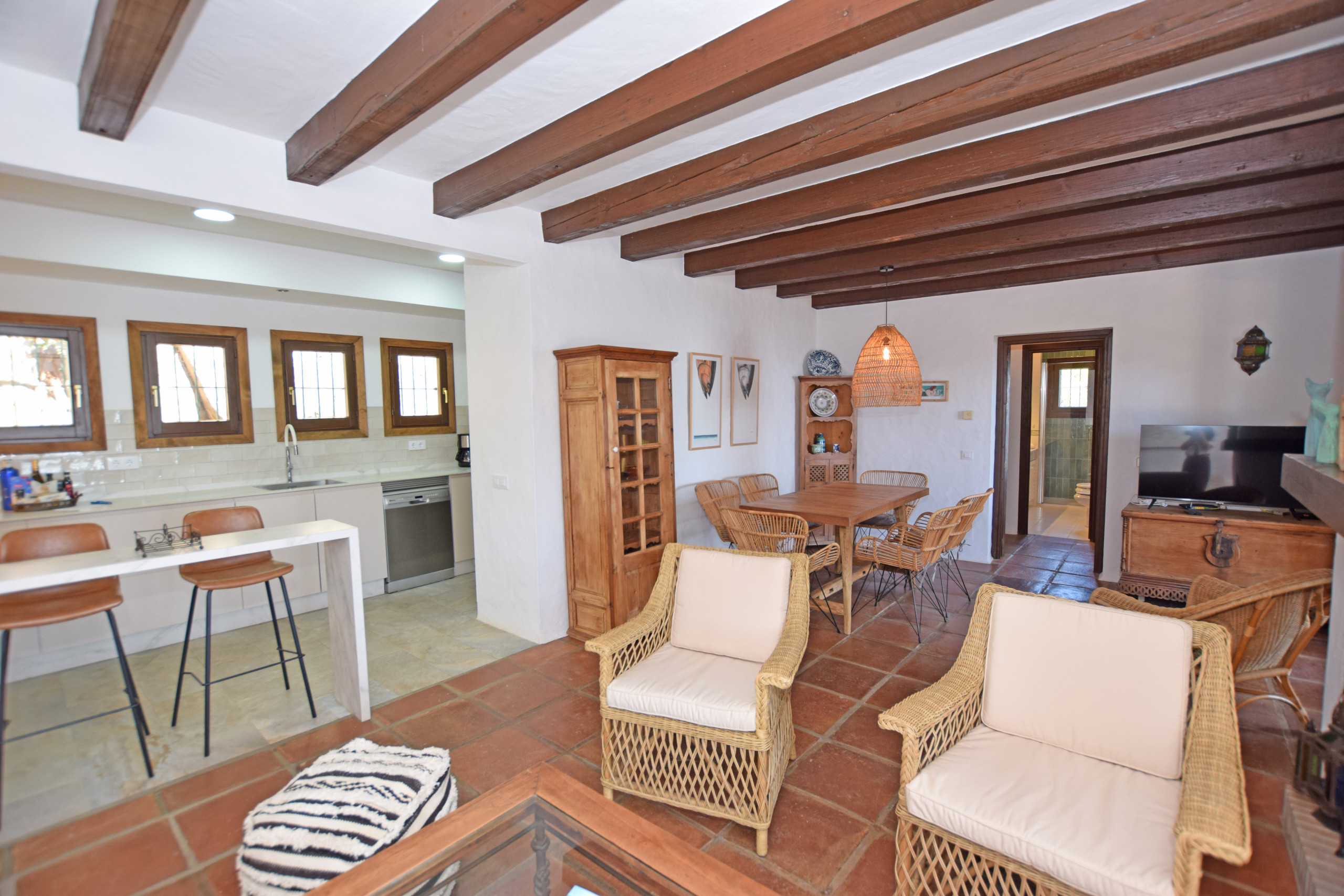 Beim Betreten des Anwesens finden wir eine Aufteilung, die ein Wohn-Esszimmer mit Kamin, eine voll ausgestattete Küche mit Speisekammer und Waschküche sowie zwei komplette Badezimmer umfasst. Darüber hinaus gibt es drei Doppelzimmer, von denen eines ein 180cm Bett und ein eigenes Badezimmer, ein weiteres ein 150cm Bett und das dritte zwei Einzelbetten von 90cm hat.